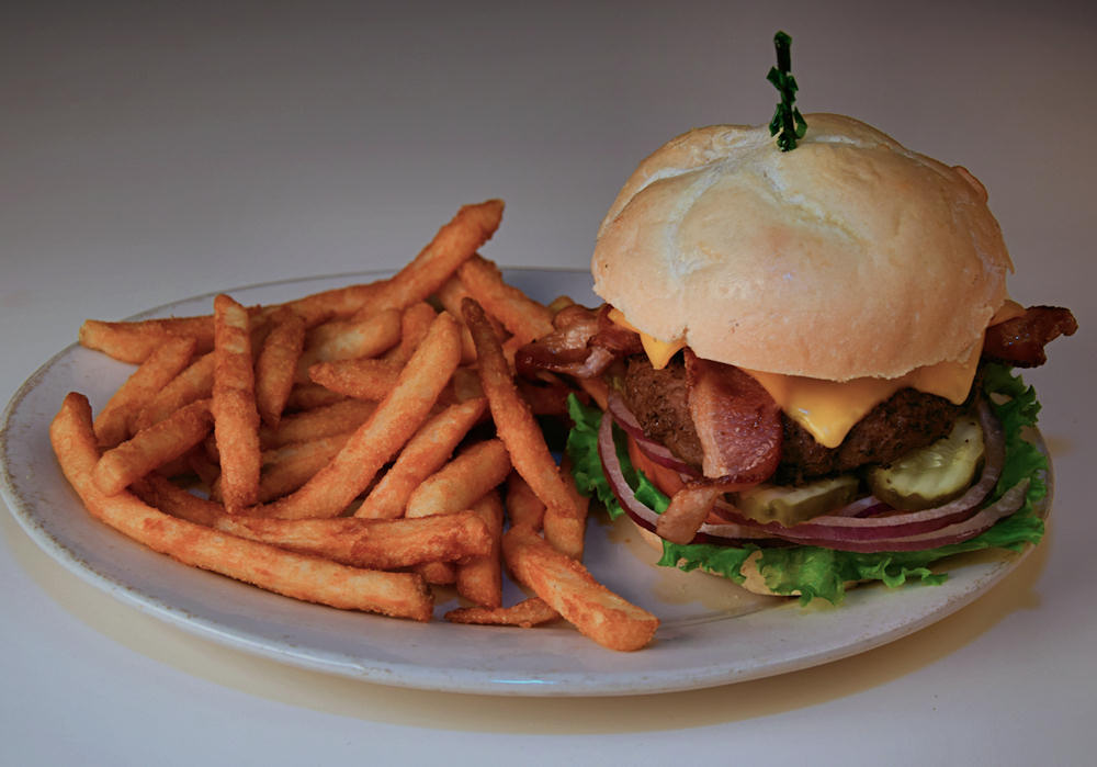 Chef's Choice $9.95 8oz. chuck brisket and short rib blend served with fries on a crustini roll. Onion rings $2.00 up charge.